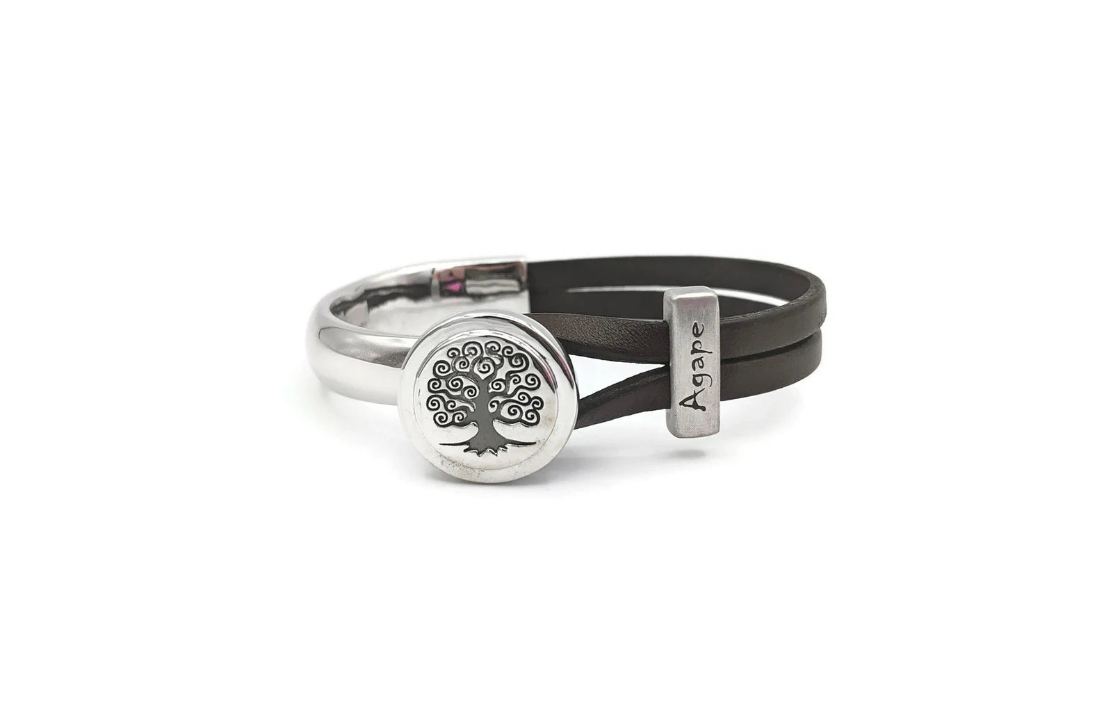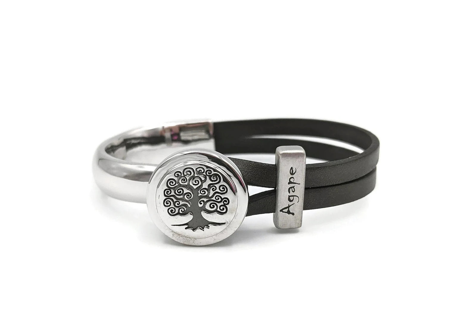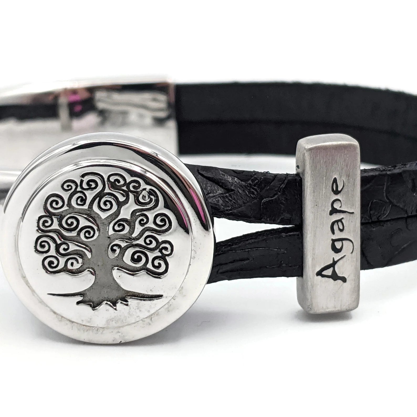 Agape Leather Bracelet with Tree of Life Half Cuff