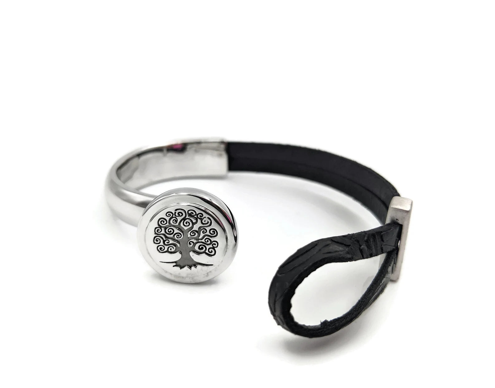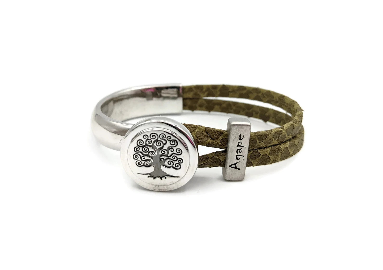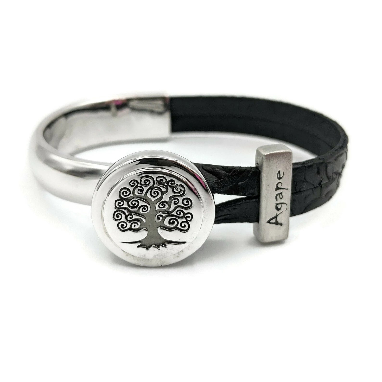 Agape Leather Bracelet with Tree of Life Half Cuff