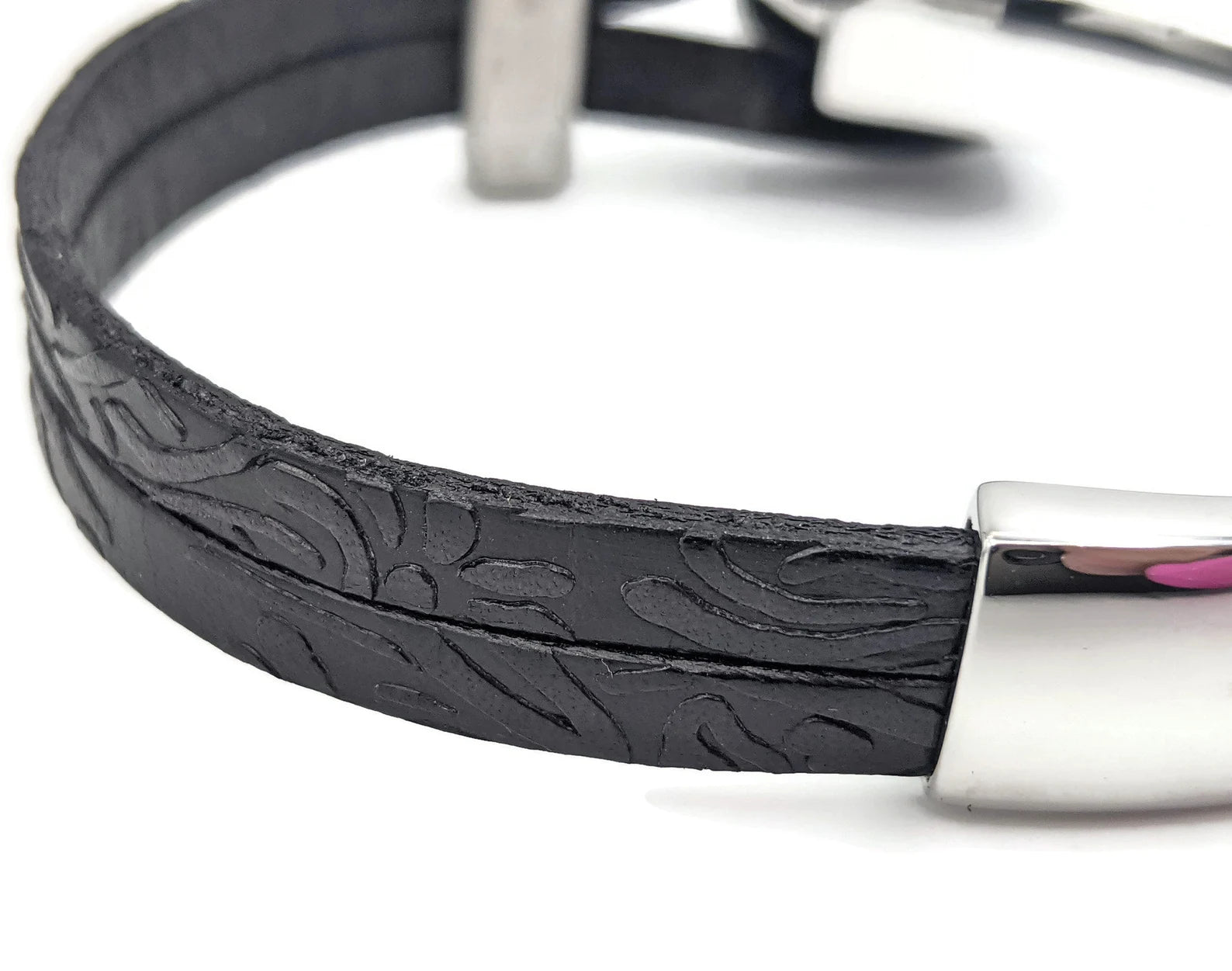 Agape leather bracelet with Tree of Life Half Cuff. The leather is embossed with a floral pattern.
