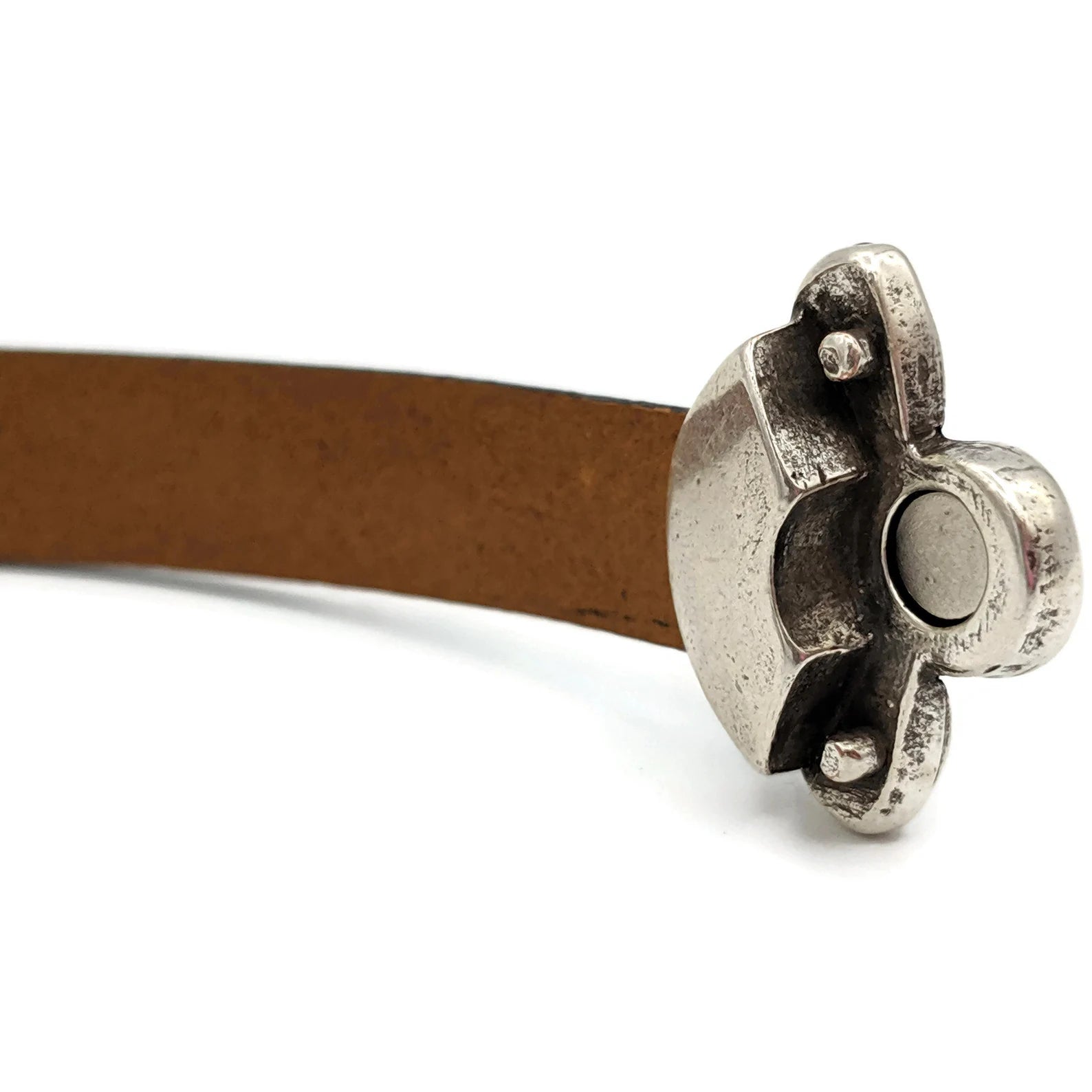 The bracelet is a yellow leather with a magnetic sunflower clasp.
