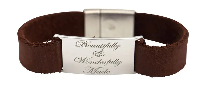 Sterling Silver "Beautifully & Wonderfully Made" Bracelet on 100% leather with a silver magnetic clasp.