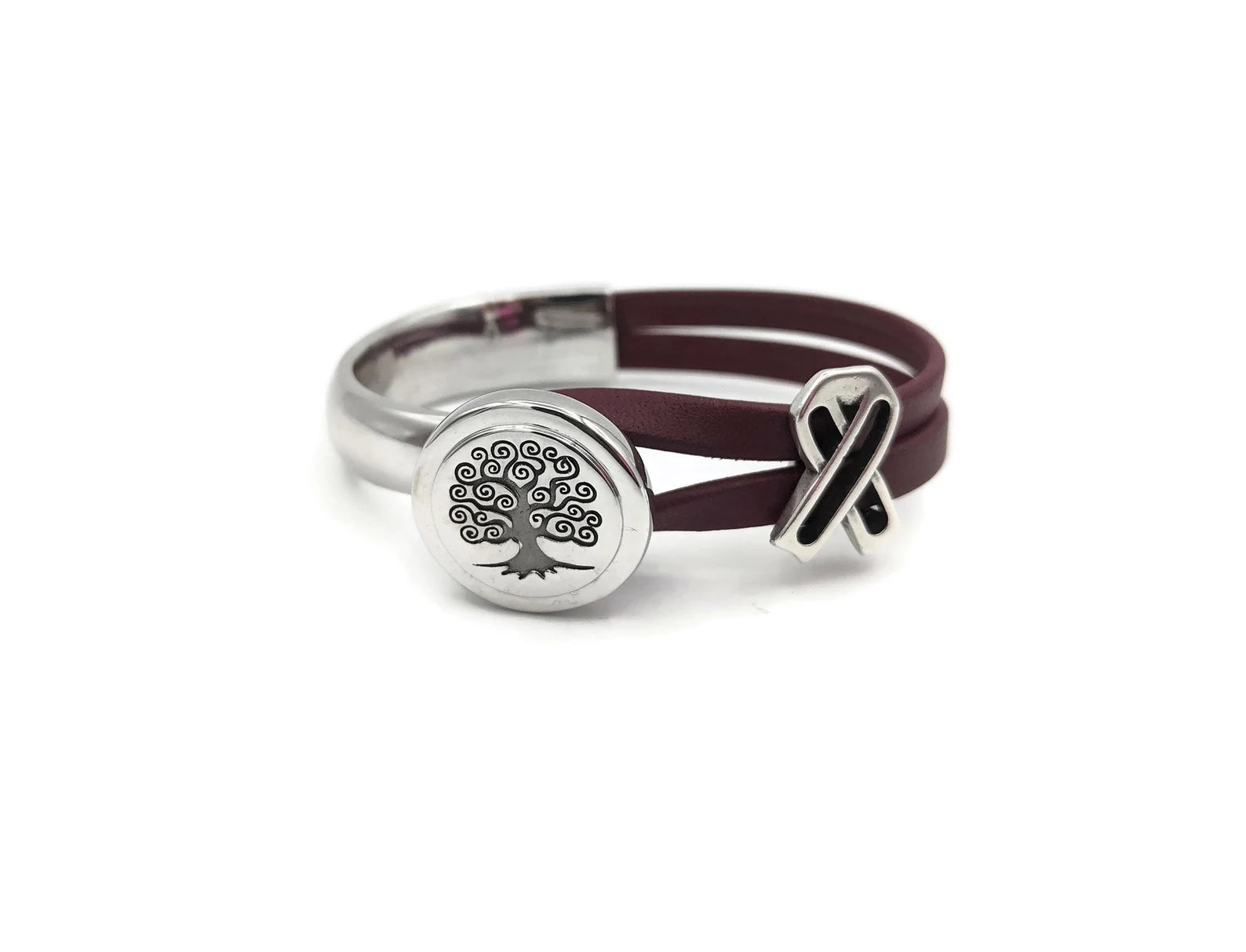 Multiple Myeloma Tree Of Life Leather Bracelet