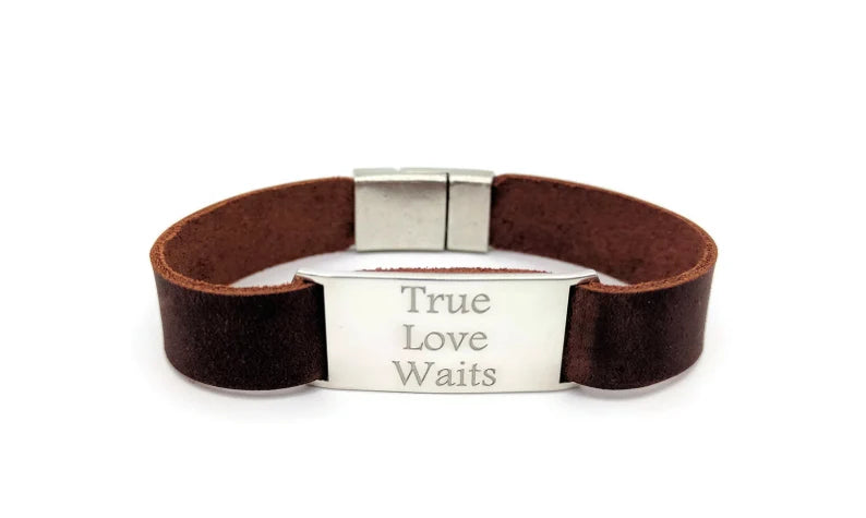 Sterling Silver "True Love Waits" Bracelet on 100 % leather with a silver magnetic clasp.