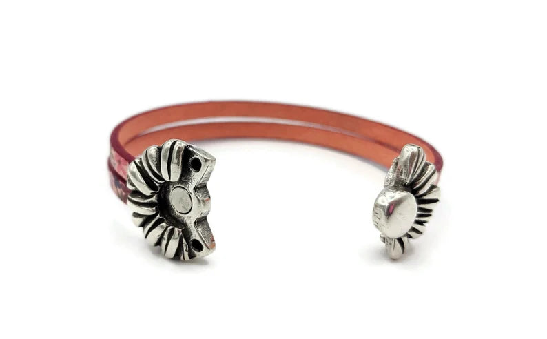 Daisy Leather Bracelet with Magnetic Flower Clasp