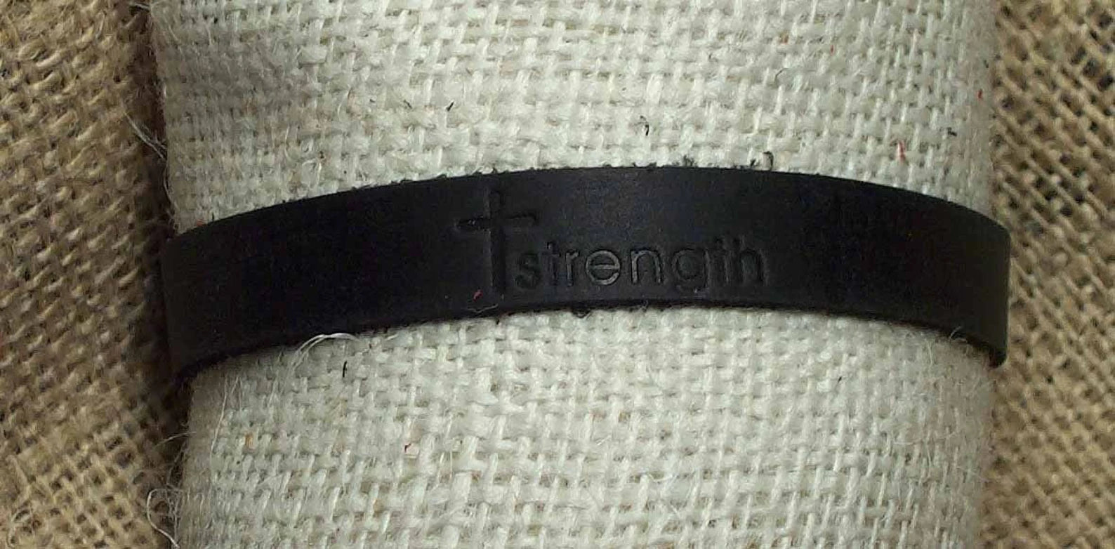 Handmade, all natural, 100% leather bracelets branded with a cross and the word strength. Unisex. Available in black or brown leather.