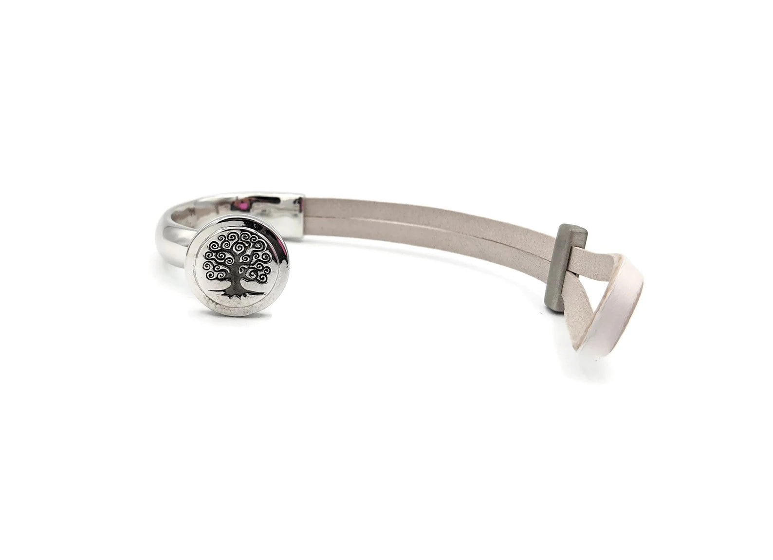 White Snakeskin Leather Lung Cancer Warrior Bracelet with Tree of Life Half Cuff