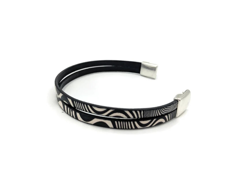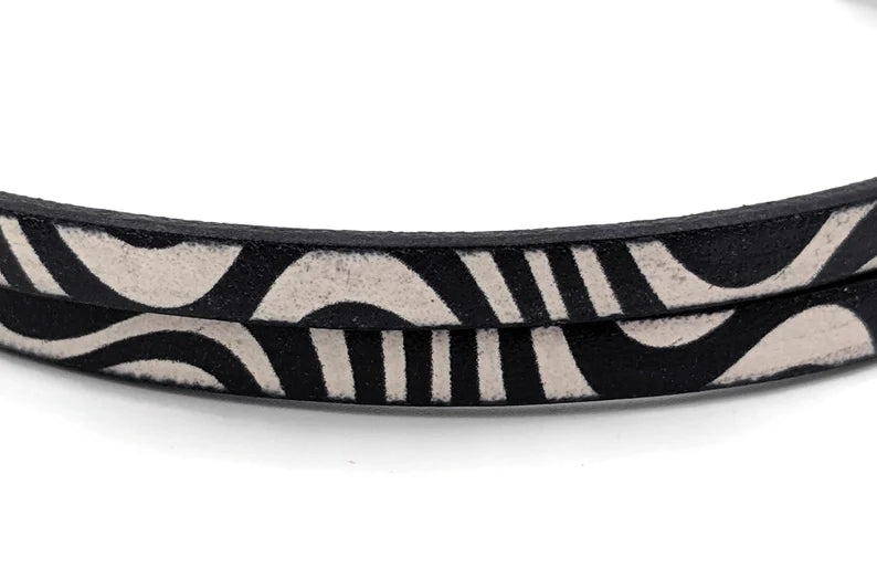 This is a 5 mm double strand zebra printed leather bracelet with a silver magnetic clasp.